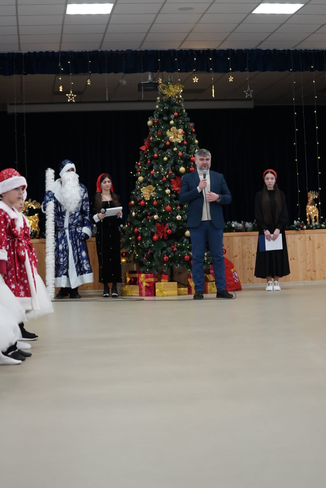 В своей поздравительной речи директор школы Мансур Усманов выразил слова благодарности всем, кто оказал помощь при подготовке к этому замечательному празднику, а также поздравил всех обучающихся, родителей и педагогов с наступающим Новым годом.